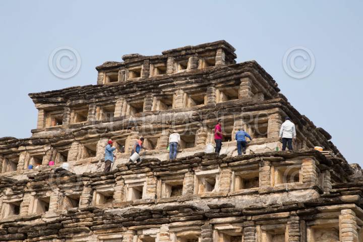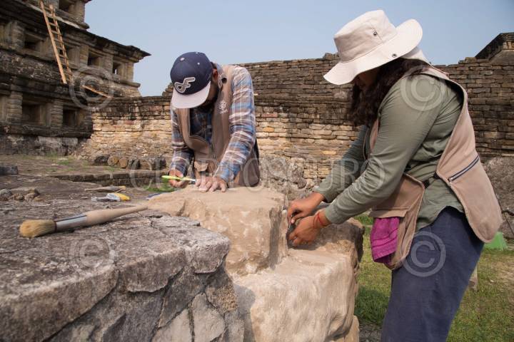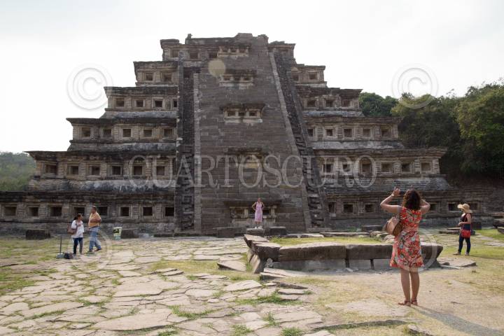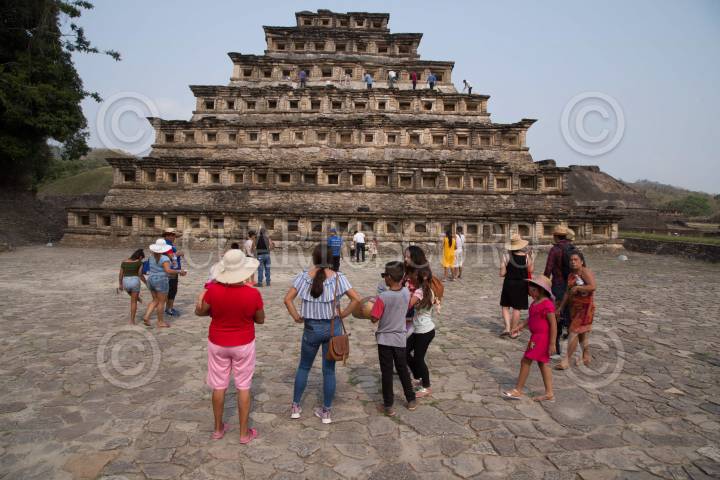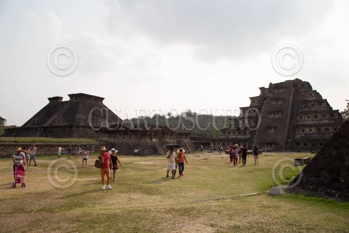 TAJIN, VERACRUZ. 26ABRIL2019.- Decenas de turistas nacionales visitan el sitio arqueológico de Tajín, en donde personal del INAH, realiza trabajos de conservación de la pintura mural y otros acabados arquitectónicos de la Zona arqueológica. FOTO: MARTIN ZETINA / CUARTOSCURO.COM