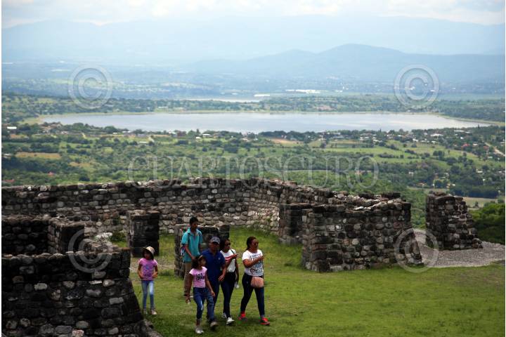 TEMIXCO, MORELOS, 15JULIO2019. Zona arqueológica de Xochicalco, en la imagen turistas recorren el complejo, al fondo se observa la laguna del Rodeo. FOTO: MARGARITO PÉREZ RETANA /CUARTOSCURO.COM