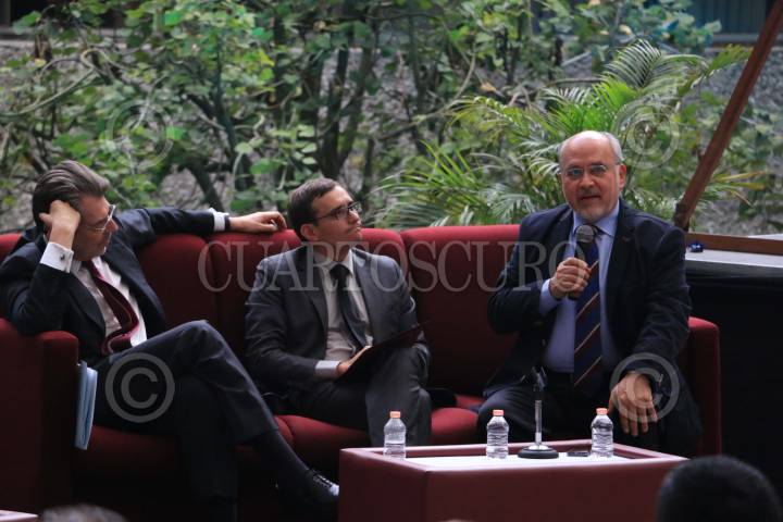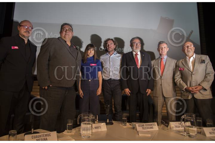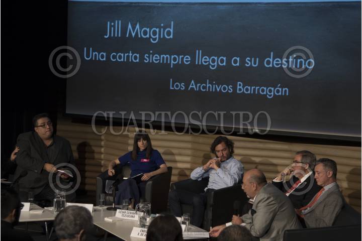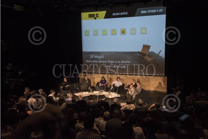 CIUDAD DE MÉXICO, 27ABRIL2017.- Cuauhtémoc Medina, Ricardo Raphael de la Madrid, César de Anda, Luis Vega, Ismael Reyes, y Enrique X. de Anda, participaron en la mesa redonda de la artista Jill Magid, para discutir sobre su exposición "Cada carta llega a su destino. Los archivos Barragán", que ha creado conflicto en la comunidad debido a la muestra de un anillo de diamento hecho con las cenizas del cuerpo del arquitecto Luis Barragán. FOTO: TERCERO DÍAZ /CUARTOSCURO.COM