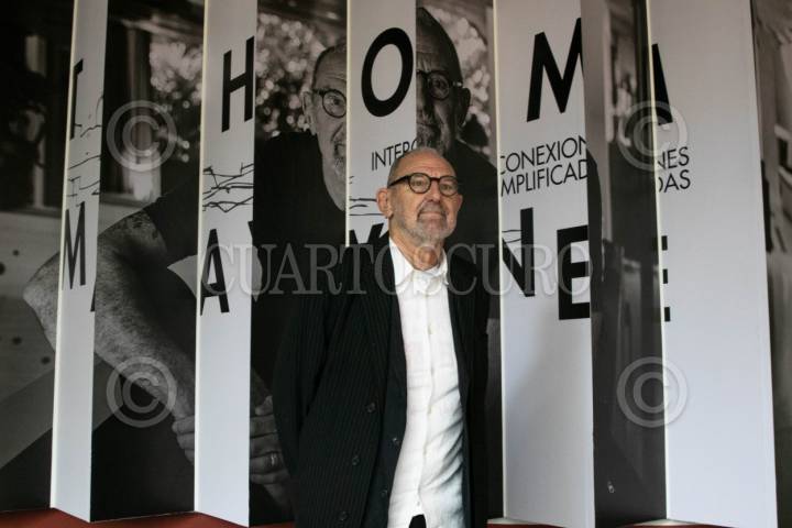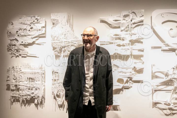 CIUDAD DE MÉXICO, 05MARZO2024.- El arquitecto estadounidense Thom Mayne presentó su exposición: Thom Mayne: Interconexiones Amplificadas, en el Museo Franz Mayer. El ganador del premio Pritzker 2005 señaló que en esta muestra lo que verán es su proceso creativo-experimental que hace antes de proyectar un edificio o un complejo habitacional, y que para él es un mostrar un aspecto muy privado de si mismo. Fue acompañado por Giovana Jaspersen, director del Franz Mayer. FOTO: MOISÉS PABLO/CUARTOSCURO.COM