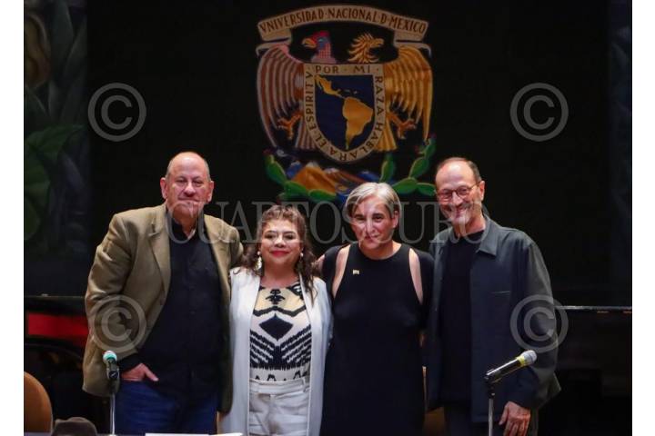 CIUDAD DE MÉXICO, 19SEPTIEMBRE2024.- Eduardo Vázquez Martín, Coordinador Ejecutivo de San Ildefonso; Clara Brugada, jefa de gobierno electa de la Ciudad de México; Ada Colau, ex alcaldesa de Barcelona, y Miquel Adriá, Arquitecto, durante la conferencia de la edición 2024 del festival de arquitectura Mextropoli. FOTO: CUARTOSCURO.COM
