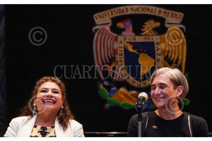 CIUDAD DE MÉXICO, 19SEPTIEMBRE2024.- Clara Brugada, jefa de gobierno electa de la Ciudad de México, y Ada Colau, ex alcaldesa de Barcelona, durante la conferencia de la edición 2024 del festival de arquitectura Mextropoli. FOTO: CUARTOSCURO.COM