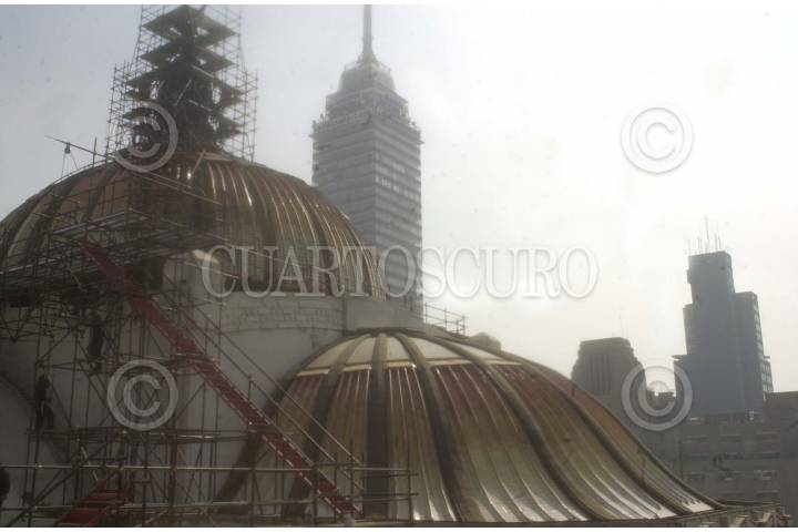 México, D.F. 02ENE2004.- Cúpula del Palacio de Ballas Artes en restauración, ubicado a un costado de la Alameda central, en el centro de la ciudad. FOTO: Sandra Perdomo/CUARTOSCURO.COM