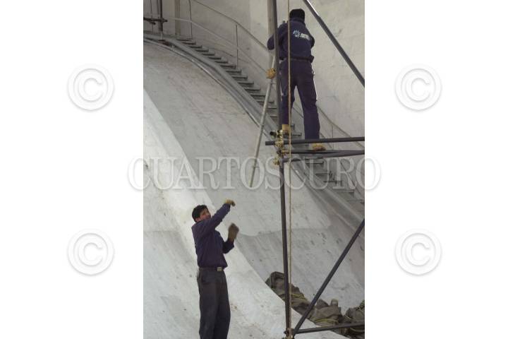 México, D.F. 02ENE2004.- Trabajadores encargados de construir los andamios que se utilizarán para la restauración de la cúpula del Palacio de Ballas Artes. FOTO: Sandra Perdomo/CUARTOSCURO.COM