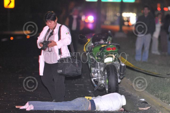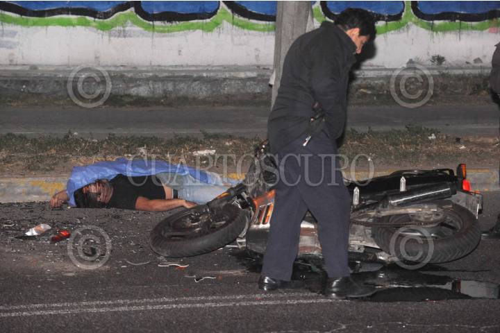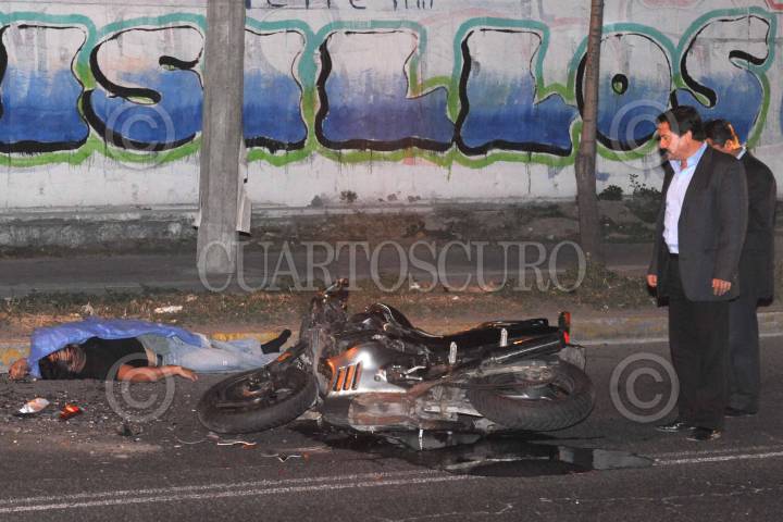 MÉXICO, D.F., 22MARZO2010.- Motociclista pierde la vida al derrapar su motocicleta e impactarse contra una camioneta, el nombre de la persona que pierde la vida es Roberto Campa Soto de 32 años de edad, los hechos se registraron en Periférico Oriente y Eje 6 colonia Leyes de Reforma delegación Iztapalapa. FOTO: LUZ ACEVEDO/CUARTOSCURO.COM