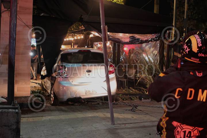 CIUDAD DE MÉXICO., 10MAYO2019. Un automovilista perdió el control al conducir con exceso de velocidad ocasionando que quedara al interior de un restaurante ubicado en la esquina de Salamanca y avenida Chapultepec en la colonia Roma Norte. Del accidente una persona que caminaba por el lugar resulto lesionado al ser atropellado por este vehículo. FOTO: LUIS CARBAYO /CUARTOSCURO.COM