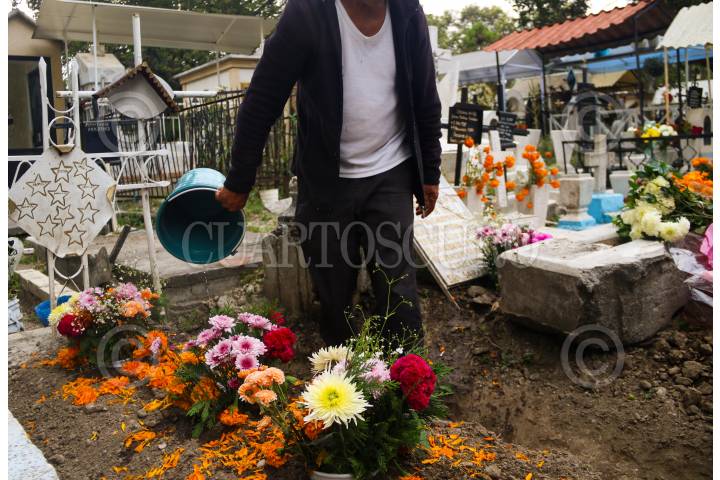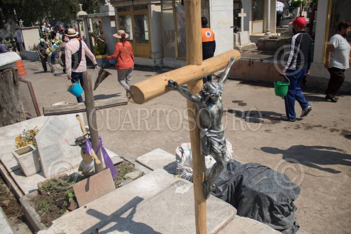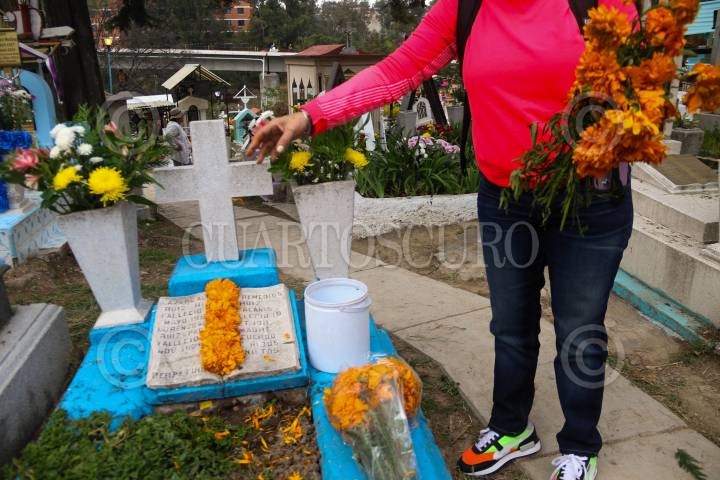 CIUDAD DE MÉXICO. 01NOVIEMBRE2024.- Visita a arreglar las tumbas de los que se adelantaron, niños y adultos este día de todos Santos, en el panteón civil de Santa Fé, en la alcaldía Álvaro Obregón. FOTO: VICTORIA VALTIERRA/CUARTOSCURO.COM