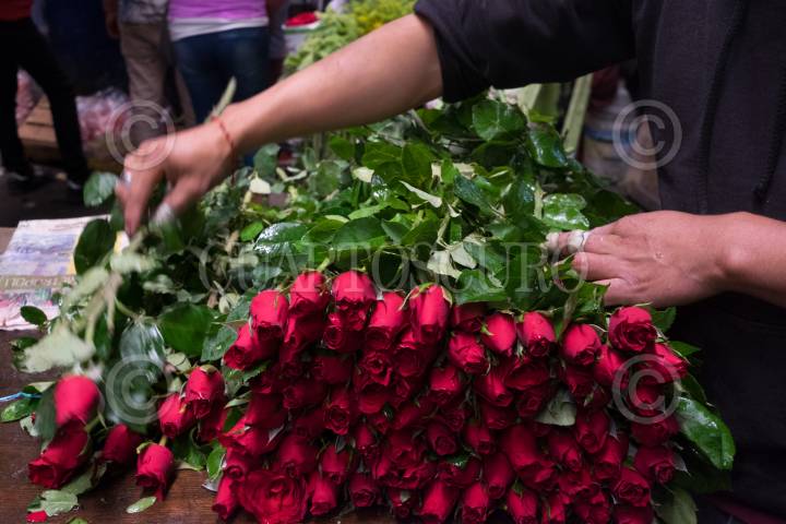 CIUDAD DE MÉXICO, 09MAYO2019.- Comerciantes arreglan rosas en la venta de flores y arreglos florales en el Mercado de Jamaica por el festejo de mañana del Día de las Madres. FOTO: GRACIELA LÓPEZ /CUARTOSCURO.COM