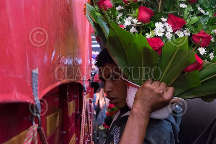 CIUDAD DE MÉXICO, 09MAYO2019.- Un comerciante carga arreglos de rosas en el Mercado de Jamaica por el festejo de mañana del Día de las Madres. FOTO: GRACIELA LÓPEZ /CUARTOSCURO.COM