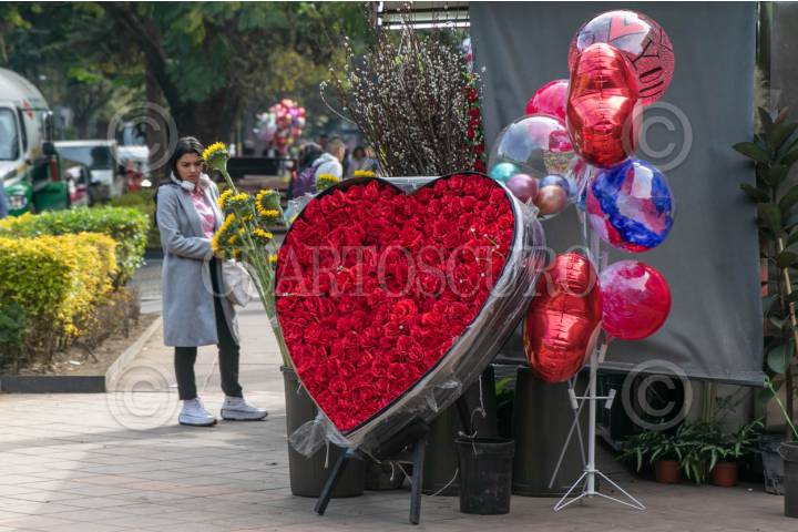 CIUDAD DE MÉXICO, 14FEBRERO2024.- Los capitalinos desembolsarán un 22% más de dinero en relación a lo que gastaron el año pasado en los regalos del Día del Amor y la Amistad, así lo señaló la Alianza Nacional de Pequeños Comerciantes (ANPEC). En la imagen venta de arreglos florales en Polanco. FOTO: MOISÈS PABLO/CUARTOSCURO.COM