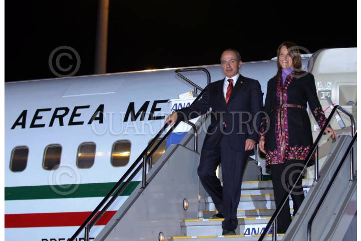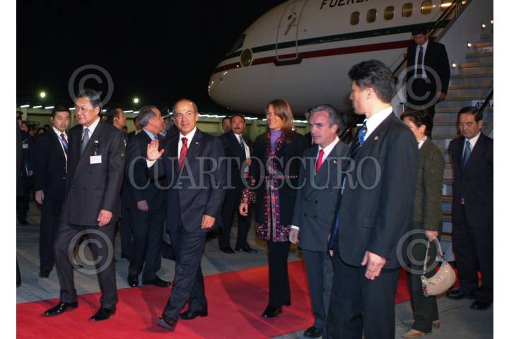 YOKOHAMA, JAPON, 12NOVIEMBRE2010.- Felipe Calderón, Presidente de México, en compañía con su esposa, Margarita Zavala, arribaron al aeropuerto Internacional de la Ciudad para participar en la XVIII reunión de lideres económicos de APEC. FOTO: FRANCISCO SANTOS/CUARTOSCURO.COM