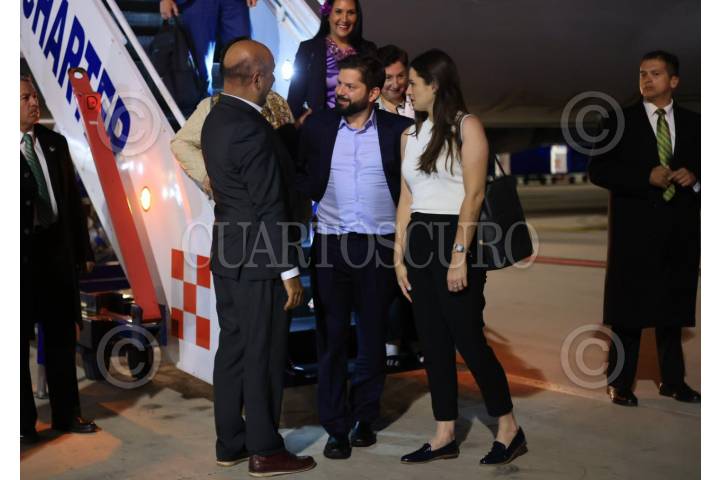 Gabriel Boric, presidente de Chile, arribó a las 19:15 horas al Aeropuerto Internacional Felipe Ángeles en compañía de su esposa Irina Karamanos para la visita oficial en nuestro país. Fueron recibidos por el subsecretario para América Latina y el Caribe, Maximiliano Reyes Zúñiga.