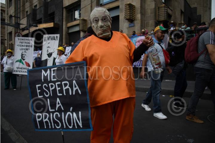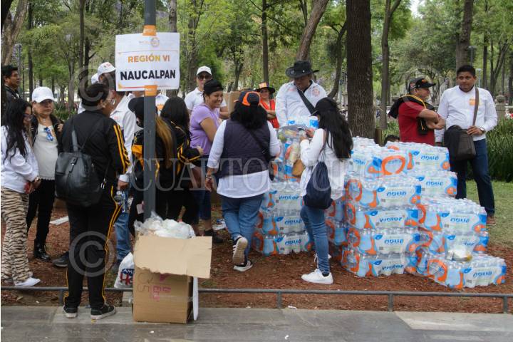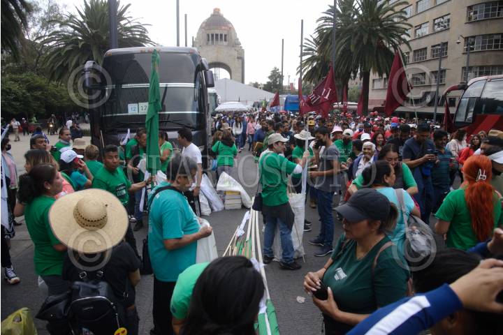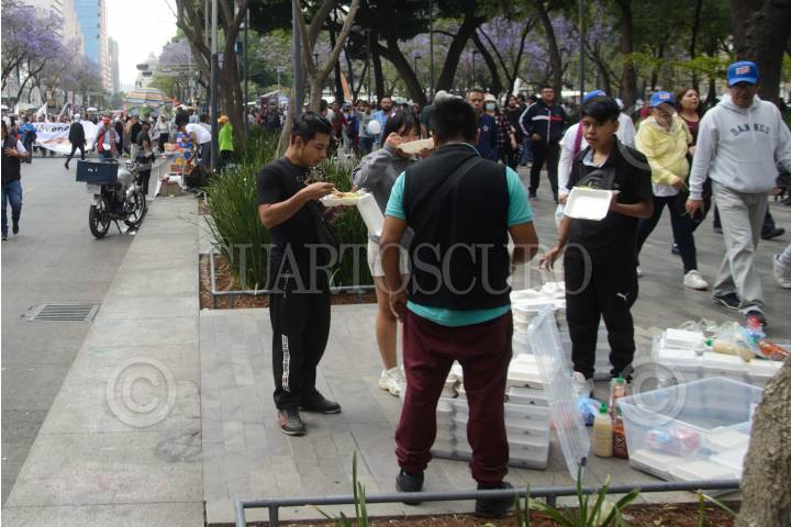 Simpatizantes llegan a las inmediaciones del centro histórico para la concentración con motivo de los 85 años de la expropiación petrolera. Algunos de ellos, arribaron en autobuses y recibieron alimentos por parte de organizaciones políticas.
