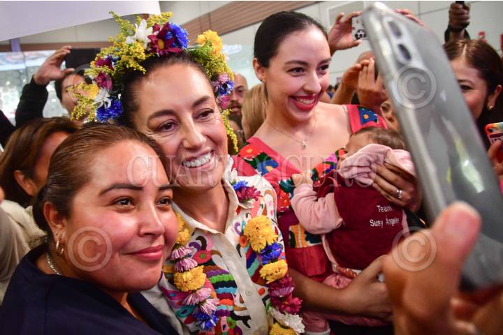 Andrés Manuel López Obrador, presidente de México, encabezó la ceremonia de arribo del primer vuelo de carga en el Aeropuerto Internacional Felipe Ángeles (AIFA).
