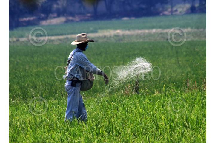 XOCHITEPEC, MORELOS, 10MAYO2019.- Un campesino arroja fertilizante a las plantas de arroz en sembradío. FOTO: MARGARITO PÉREZ RETANA /CUARTOSCURO.COM
