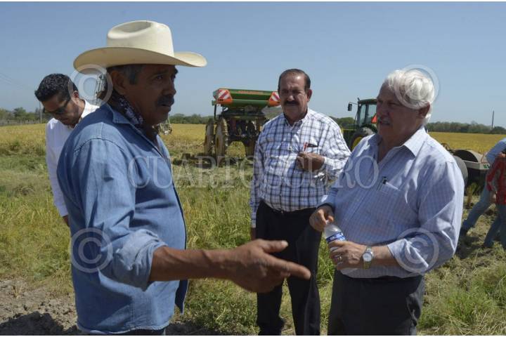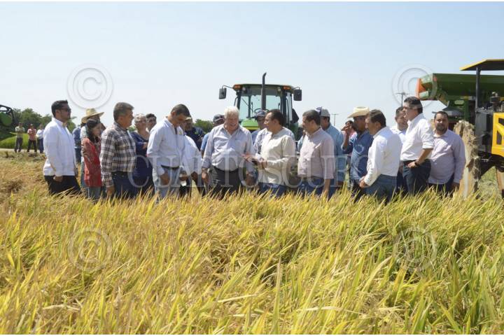 SANTIAGO IXCUINTLA, NAYARIT 20MAYO2019.- El secretario de Agricultura y Desarrollo Rural, Víctor Villalobos Arámbula, realizó un recorrido con productores e industriales de arroz de la región. Sostuvieron que para lograr la autosuficiencia en la producción del grano se ha trazado una nueva ruta que implica innovadoras políticas públicas, programas integrales, impulso al financiamiento, créditos blandos y acceso a tecnologías para ser más productivos, sostenibles e incluyentes. Los arroceros de esta región contribuyen con el 65 por ciento de la producción nacional de arroz, agrupados en la Integradora de Arroceros de la Costa del Nayar, región que también aporta alrededor del 70 por ciento de la producción estatal, concentrado en seis municipios: Santiago Ixcuintla, San Blas, Xalisco, Rosamorada, Ruíz y Bahía de Banderas. FOTO: SADER /CUARTOSCURO.COM