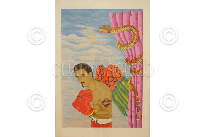 GUANAJUATO, GUANAJUATO, 15OCTUBRE2023. - "Ángel Baby" obra del artista chicano, Teddy Sandoval, la cual se muestra como parte de la exposición In Your Face, la cual forma parte de las actividades del Festival Internacional Cervantino 51. FOTO: DANIEL AUGUSTO /CUARTOSCURO.COM