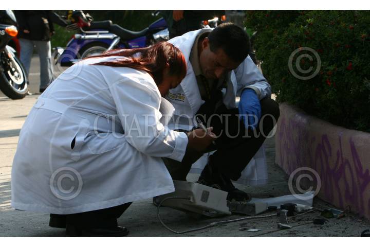 CIUDAD DE MÉXICO, 25DICIEMBRE2016.- Un artefacto explosivo de fabricación casera estallo en las puertas de las instalaciones de la CFE, ubicadas en la esquina de las calles Zempoala y Eje 5 Sur Eugenia, en la colonia Narvarte. Peritos de la procuraduría capitalina arribaron al lugar para tomar conocimiento de los hechos e iniciar las investigaciones de ley. FOTO: LUIS CARBAYO /CUARTOSCURO.COM