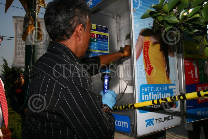 MÉXICO, D.F., 21SEPTIEMBRE2007.- Un artefacto explosivo detono en una caseta telefonica perteneciente a la compañia de Telmex en las calle de Alba casi esquina con Periférico Sur en la colonia Imán, peritos especializados acudieron al lugar a recoger evidencia para posteriores investigaciones. FOTO: SAÚL LÓPEZ/CUARTOSCURO.COM