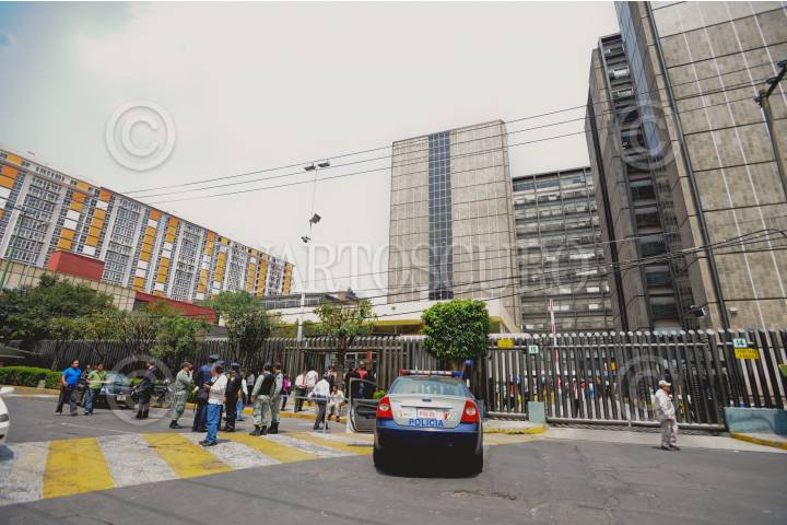 MÉXICO, D.F., 30SEPTIEMBRE2009.- Fueron evacuados trabajadores de la Torre de PEMEX después de que recibieran una llamada que al interior de estas instalaciones se registraba una Bomba. Al lugar arribaron elementos de Fuerza de Tarea para checar estas instalaciones. Sin que se encontraran artefactos sospechosos. FOTO: LUIS CARBAYO/CUARTOSCURO.COM