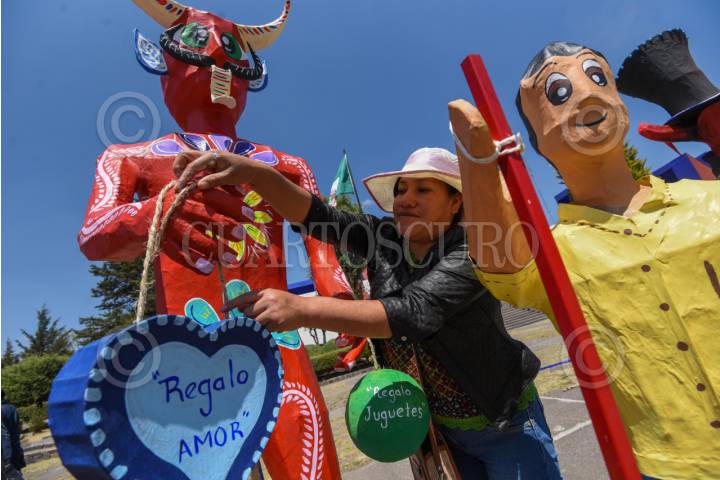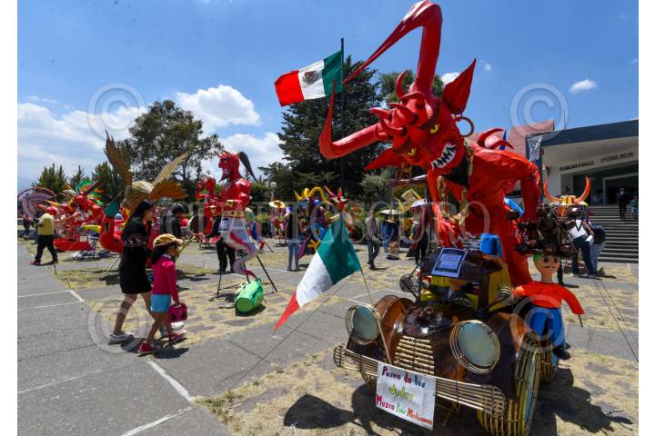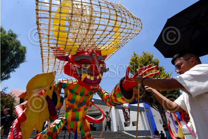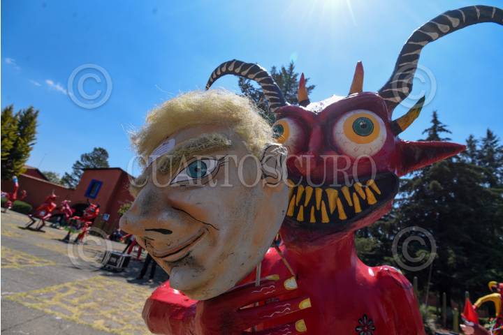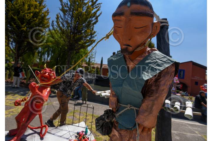 TOLUCA, ESTADO DE MÉXICO, 09ABRIL2025.- Artesanos de diversos municipios se dieron cita este día en la edición 32 del Concurso de Judas Monumentales en el Centro Cultural Mexiquense, este año se registraron 58 piezas con diversas temáticas sociales, con el carrizo y papel, los artesanos buscan con cada una de sus piezas representa el mal, anteriormente estas piezas era quemadas el Sábado de Gloria en Semana Santa. FOTO: CRISANTA ESPINOSA AGUILAR /CUARTOSCURO.COM