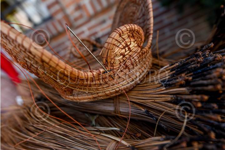 TOLUCA, ESTADO DE MÉXICO, 08 de julio de 2025.– Adriana de Jesús Contreras elabora artesanías con hoja de pino (ocoxal), que recolecta, lava y hierve para hacerla más flexible. Utiliza aguja e hilo de colores para tejer fruteros, canastas, portacubiertos, tortilleros y bisutería. El tiempo de elaboración varía entre un día y un mes, según el tamaño y complejidad de cada pieza. FOTO: CRISANTA ESPINOSA AGUILAR / CUARTOSCURO.COM