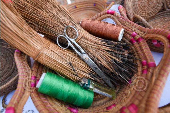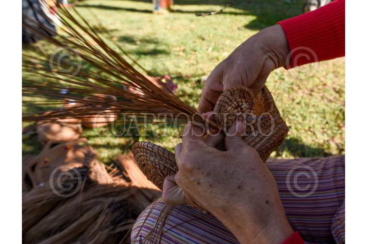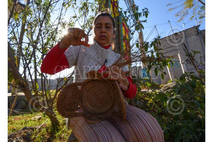 TOLUCA, ESTADO DE MÉXICO, 08 de julio de 2025.– Adriana de Jesús Contreras, originaria de Michoacán y radicada desde hace 25 años en San Andrés Cuexcontitlán, se dedica a la elaboración de artesanías con hoja de pino, también conocida como ocoxal. Recolecta el material en el campo, lo lava y hierve para hacerlo más flexible, y con aguja e hilo de colores da forma a fruteros, tortilleros, canastas, portacubiertos y piezas de bisutería. Dependiendo del tamaño y nivel de detalle, una pieza puede tardar desde un día hasta un mes en completarse. Trabaja en conjunto con su familia, quienes colaboran en la recolección, tejido o venta. Ofrece sus productos en el centro de Toluca, en la plaza Carlos Gómez, cerca del Parque Cuauhtémoc Alameda Central, y los lunes en la Concha Acústica. FOTO: CRISANTA ESPINOSA AGUILAR / CUARTOSCURO.COM
