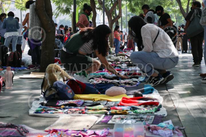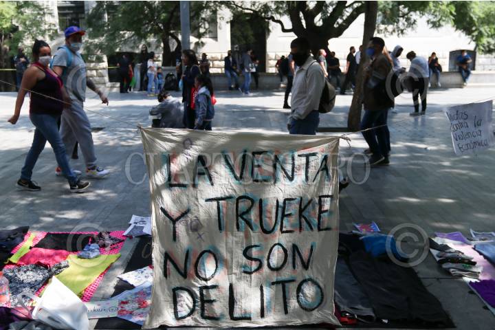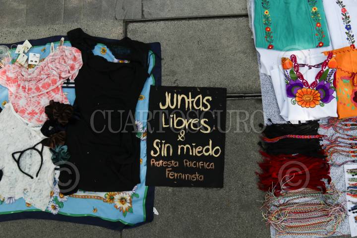 Mujeres de distintos colectivos feministas, instalaron un bazar a un costado del Palacio de Bellas Artes.