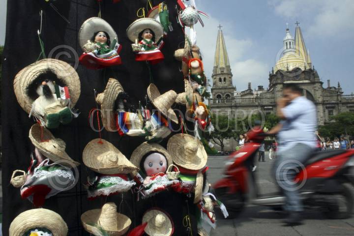 GUADALAJARA, JALISCO, 28AGOSTO2012.- En el centro tapatio ya se comienzan a observar los pequeños negocios de banderas, llaveros, trompetas, moños y todo tipo de artículos patrios para celebrar el próximo de 16 septiembre, mes en que se llevan a cabo diversas actividades conmemorativas de nuestra patria. FOTO: FERNANDO CARRANZA GARCÍA /CUARTOSCURO.COM