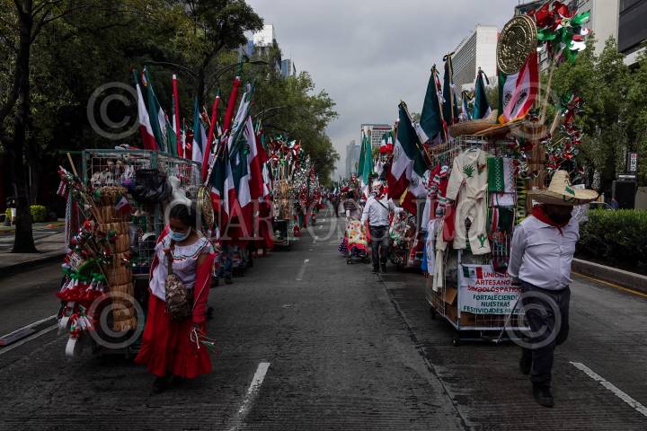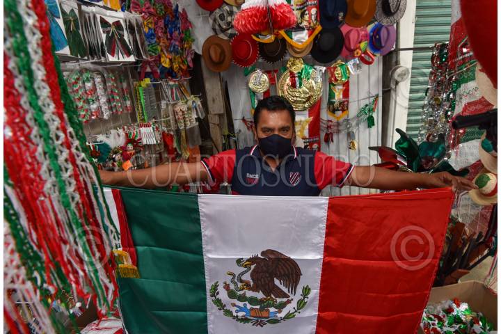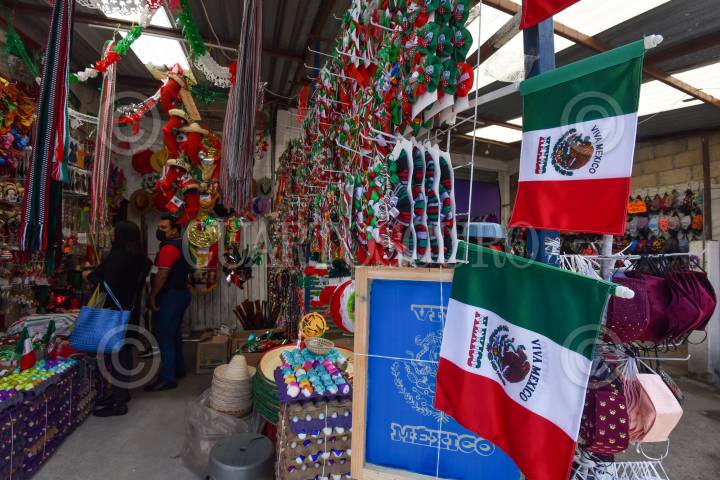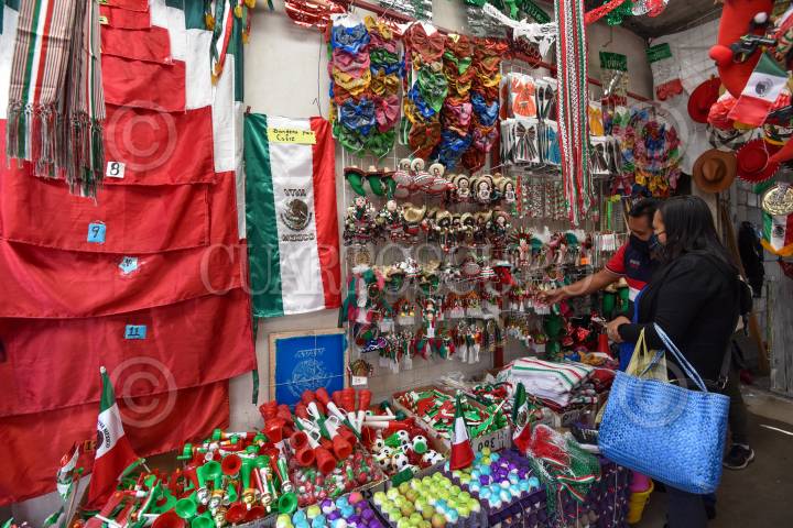 Productores y vendedores de artículos patrios han visto mermadas su ventas desde el año pasado por la contingencia por COVID-19, al ser canceladas las celebraciones de las Fiestas Patrias, este año muchos prefieren no invertir y sacar los productos que ya tenían, ante la incertidumbre de las celebraciones.