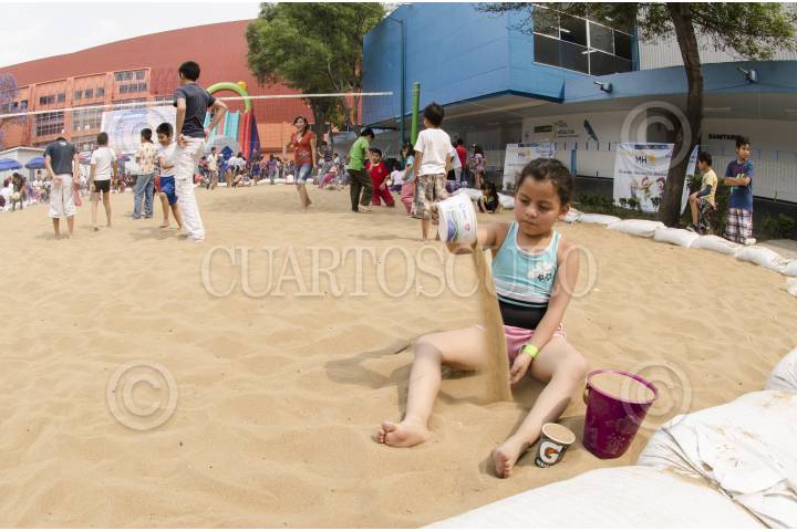 MÉXICO, D.F., 23JULIO2011.- Decenas de niños acuden a la playa artificial de San Miguel Teotongo, en la delegación Iztapalapa, para aprovechar el periodo vacacional de verano. FOTO: ISAAC ESQUIVEL/CUARTOSCURO.COM