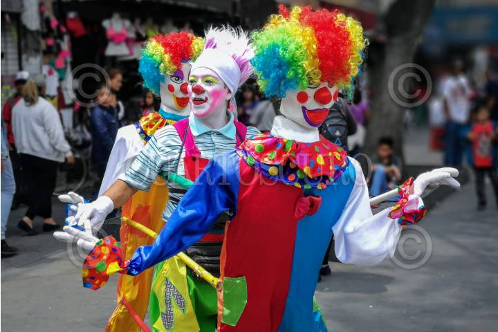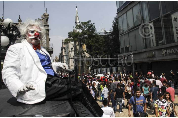 CIUDAD DE MÉXICO, 21MAYO2016.- Un hombre disfrazado de payaso, se gana la vida entreteniendo a la gente que camina por la calle de Madero, en el centro histórico. FOTO: ANTONIO CRUZ /CUARTOSCURO.COM