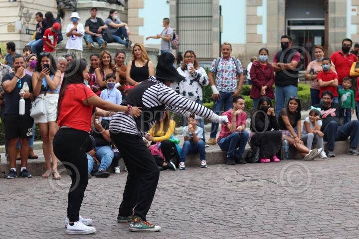 CIUDAD DE MÉXICO, 22DICIEMBRE2023.- Artista callejero en el Centro Histórico. FOTO: DENISSE HERNÁNDEZ/CUARTOSCURO.COM