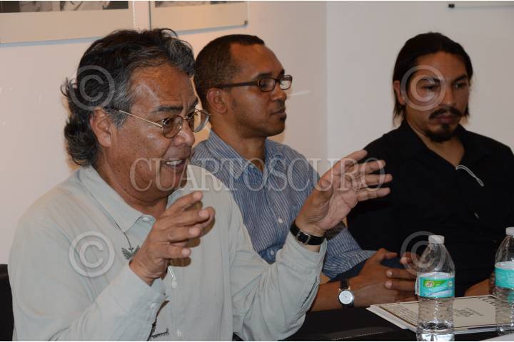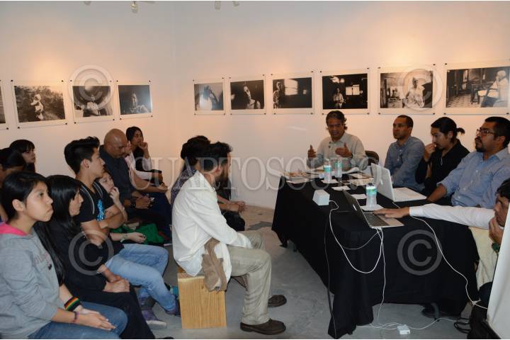 MÉXICO, D.F., 15OCTUBRE2015.- Pedro Valtierra, director de la revista y agencia Cuartoscuro realizo la presentación de la edición 134 de dicha revista, como un homenaje al fotoperiodista asesinado Rubén Espinosa, esto en compañía de la maestra Gale Lynn y el maestro Arturo Rosales en la galería Punctum, ubicada en la calle de Allende número 2 esquina con Donceles en la colonia Centro. FOTO: GALO CAÑAS /CUARTOSCURO.COM