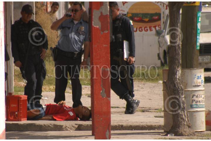 CIUDAD JUAREZ, CHIHUAHUA, 06OCTUBRE2008.- Un sujeto que pretendía asaltar una tienda de abarrotes murió de un balazo al enfrentarse con policía encubierto que cuidaba la negociación. FOTO: BIEN INFORMADO.COM/CUARTOSCURO.COM