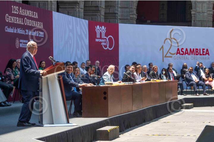 Andrés Manuel López Obrador, Presidente de México, en la 125 Asamblea General Ordinaria del Infonavit en Palacio Nacional.