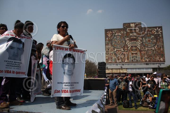 MÉXICO, D.F., 19FEBRERO2015.- La asamblea interuniversitaria recibió a los padres de los 43 normalistas desaparecidos de Ayotzinapa, para realizar un mitin a un costado de la Biblioteca Central en CU. FOTO: ADRIANA ALAVREZ/CUARTOSCURO.COM