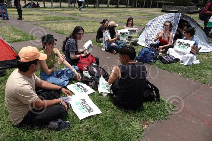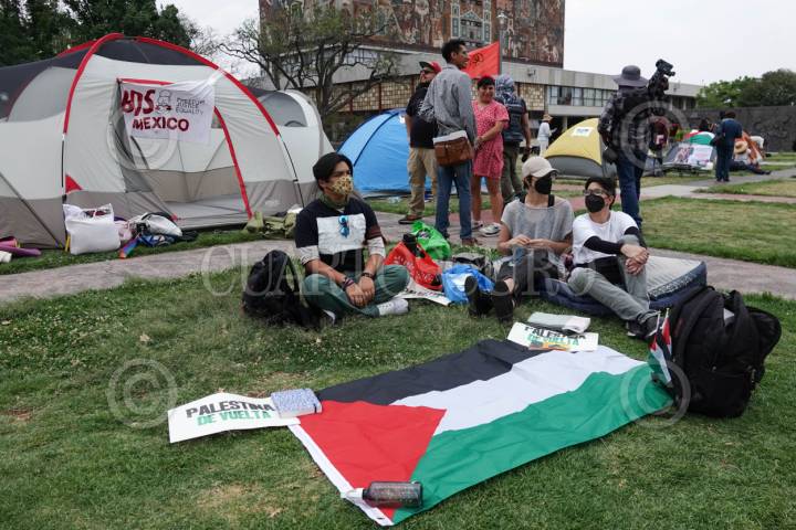 CIUDAD DE MÉXICO, 02MAYO2024.- Estudiantes de la Asamblea interuniversitaria instalaron un campamento en solidaridad con Palestina, en las inmediaciones de la Rectoría de Ciudad Universitaria. Palestina continúa bajo ataques por parte del ejército israelí mientras la presión internacional se ha intensificado con protestas en universidades de Estados Unidos, Alemania y Francia. FOTO: GALO CAÑAS/CUARTOSCURO.COM