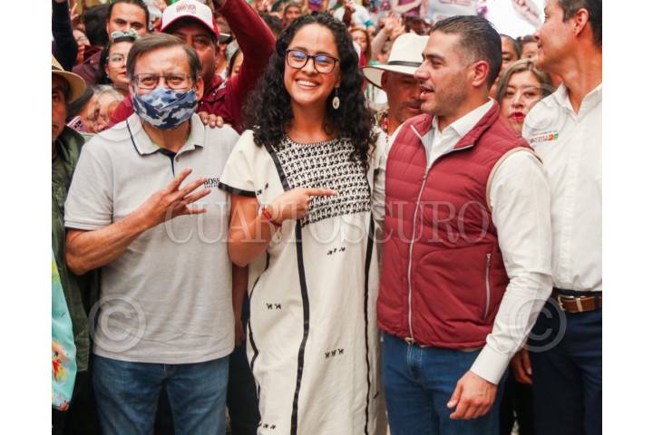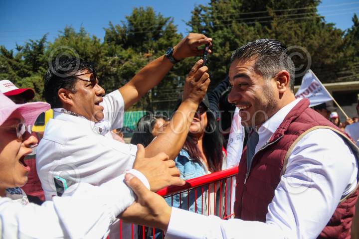 CIUDAD DE MÉXICO. 12MARZO2024.- Omar García Harfuch, candidato al Senado acompañó a Carlos Ulloa a la asamblea territorial de Morena en San Miguel Topilejo de la alcaldía Tlalpan. Ahí refrendo, el ex director de la policía García Harfuch el apoyo a los jóvenes y alejarlos de las malas conductas. Gabriela Osorio aspirante a la alcaldía de Tlalpan acompaño a los candidatos. FOTO: VICTORIA VALTIERRA/CUARTOSCURO.COM
