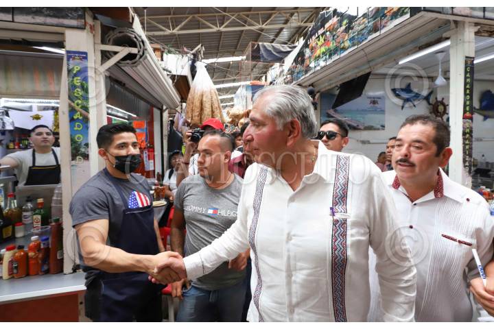 Adán Augusto López recorrió el mercado de esta ciudad en donde saludo a los ciudadanos que se encontraba a su paso, esto como parte de sus asambleas informativas con mira a ganar la encuesta para encabezar la candidatura a la presidencia de Morena.