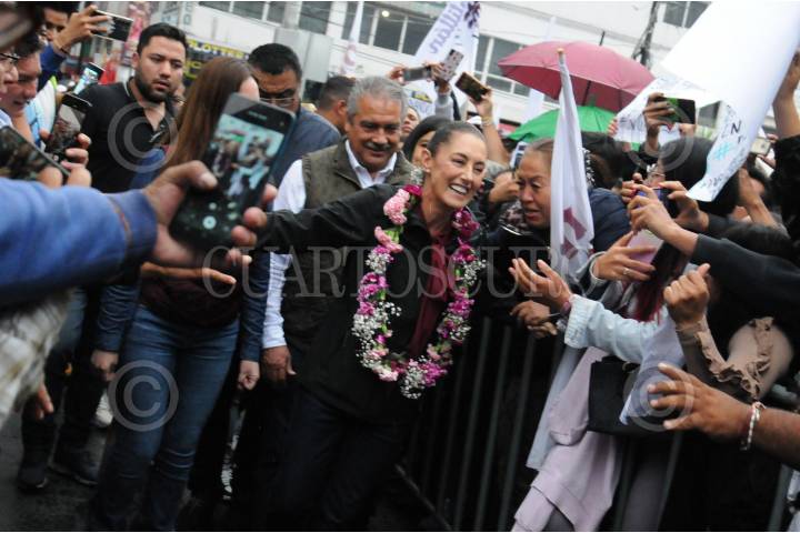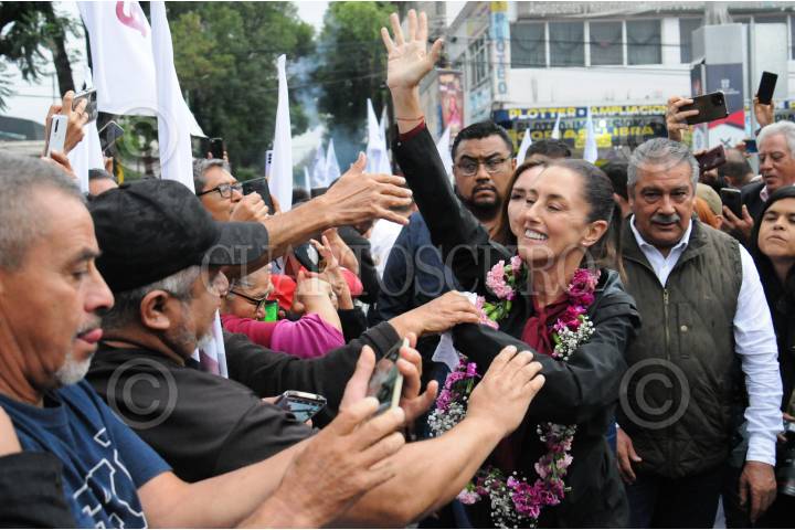 Claudia Sheinbaum saluda a sus seguidores al llegar a Ecatepec.