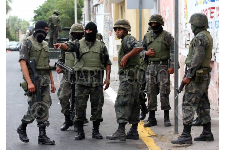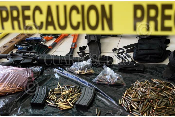 GENERAL ESCOBEDO, NUEVO LEÓN, 04MARZO2009.- El pasado 2 de marzo fue asegurado armamento, municiones, enervantes y un vehículo tras recibir una llamada anónima que informo que dos personas del sexo masculino entraron al restaurante Villa Real ubicado en la calle Hidalgo del Municipio de Salinas Victoria. A lo que acudieron elementos del ejercito para su detención. FOTO: ARCHIVO/CUARTOSCURO.COM