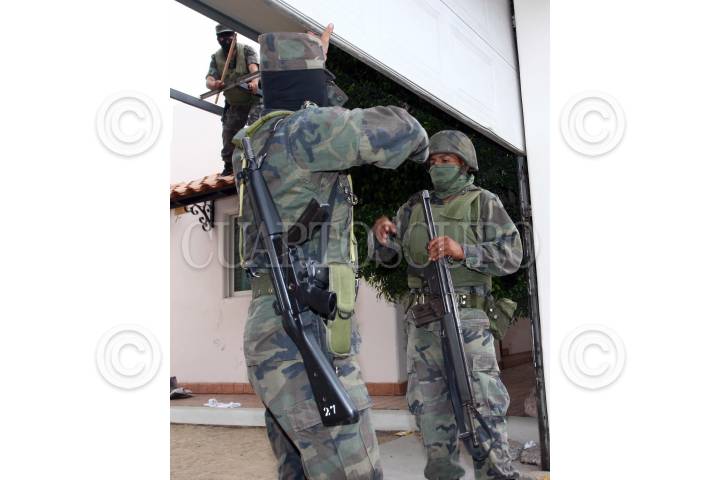 CULIACAN, SINALOA,. 04JUNIO2008.- Elementos fuertemente armados del ejercito mexicano realizaron un operativo donde catearon una casa en la calle Teofilo Noris en el numero 426 a espaldas de la rectoria de la Universidad Autonoma de Sinaloa. En el lugar se aseguraron camionetas del lujo, una caja fuerte, y cajas que quedaron a disposicion de la PGR. FOTO: SAUL LOPEZ ESCORCIA/CUARTOSCURO.COM
