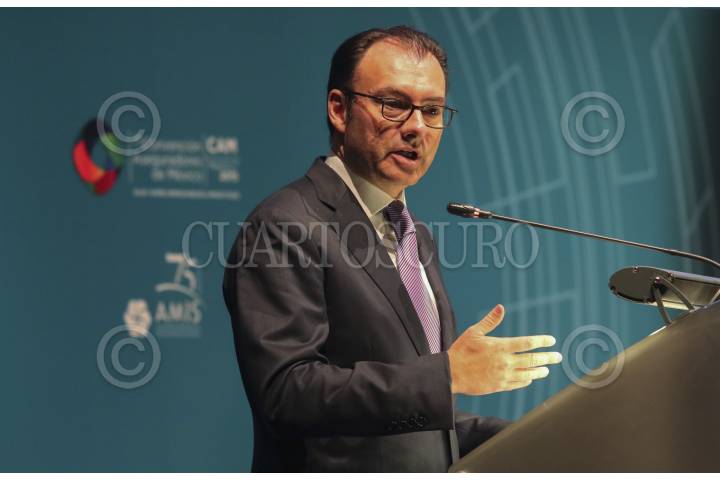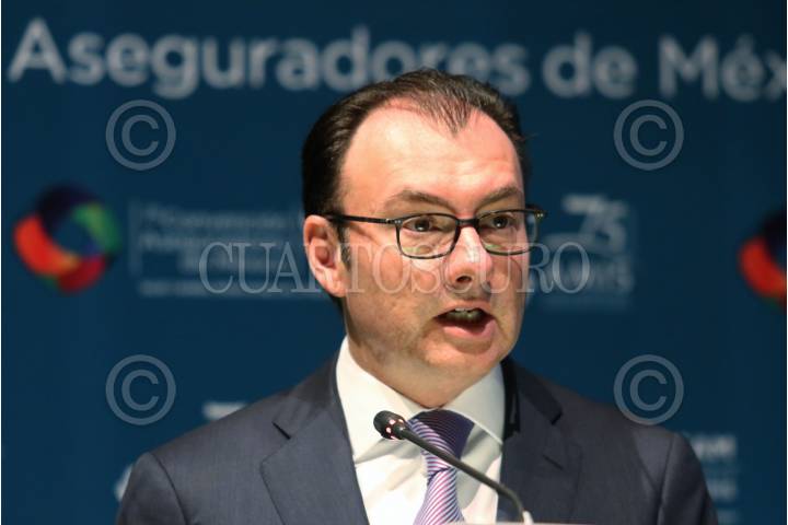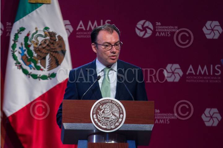 CIUDAD DE MÉXICO, 20ABRIL2016.- Luis Videgaray, secretario de Hacienda, durante la 26 Convención de Aseguradores de México, en el Centro Banamex. FOTO: ISAAC ESQUIVEL /CUARTOSCURO.COM