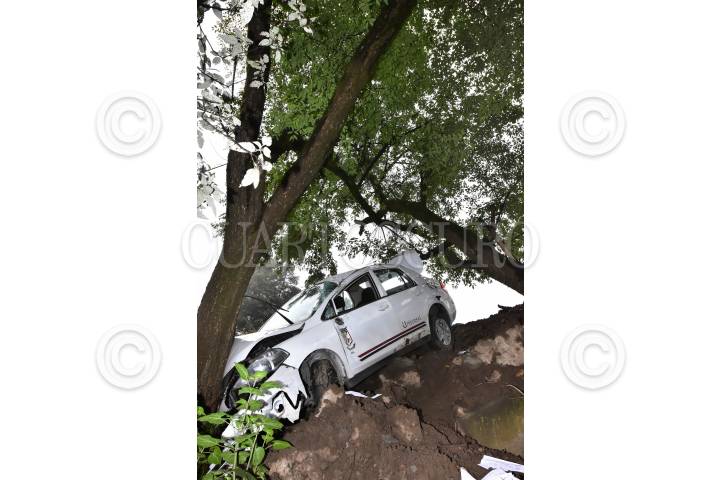 CIUDAD DE MÉXICO, 14JUNIO2017.- Un auto fue abandonado en un barranco, un árbol detuvo que la unidad se fuera a la profundidad, bomberos realizaron maniobras para sacarlo del lugar, se desconoce el paradero del chófer. Los hechos en el kilómetro 28 de la autopista México-Toluca. FOTO: ARMANDO MONROY /CUARTOSCURO.COM