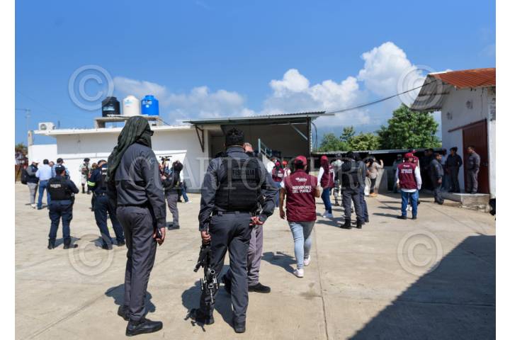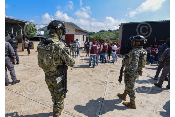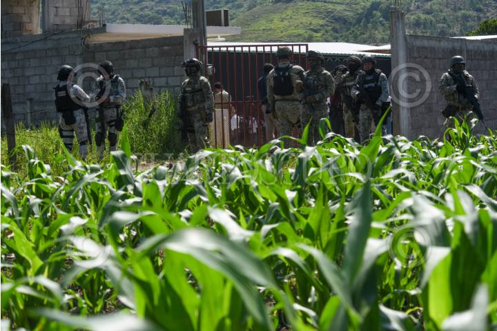 TEJUPILCO, ESTADO DE MÉXICO, 25JULIO2025.- Elementos de la GN, Marina y Ejército resguardan una granja asegurada durante el Operativo Liberación, en donde serían dispuestos de manera anticipada 60 puercos que ya no se encontraban en el lugar, por lo que se abrió la respectiva carpeta de investigación en la fiscalía. FOTO: CRISANTA ESPINOSA AGUILAR/CUARTOSCURO.COM