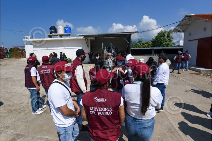 TEJUPILCO, ESTADO DE MÉXICO, 25JULIO2025.- Servidores del Pueblo de la Secretaría del Bienestar durante la intervención de la FGJEM para disponer de los animales asegurados en el Operativo Liberación de manera anticipada en la comunidad de Lodo Prieto en Tejupilco, al llegar al punto no fueron encontrados aproximadamente 60 puercos, por lo que se abrió la respectiva carpeta de investigación en la fiscalía. FOTO: CRISANTA ESPINOSA AGUILAR/CUARTOSCURO.COM