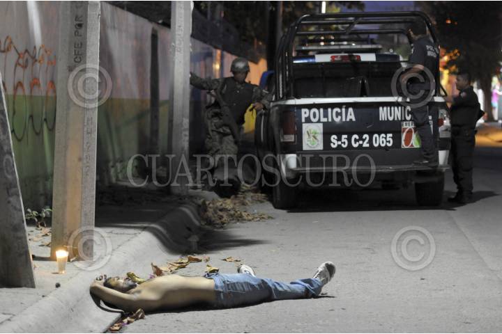 ACAPULCO, GUERRERO, 01ENERO2013.- El día de ayer con tres balazos en el cuerpo fue encontrado un hombre de una edad aproximada a los 30 años, tirado en la calle Costa Azul, el cual vestía solo un pantalón de color azul de mezclilla y tenis blancos, a un lado de su cadáver se hallaron tres casquillos percutidos de calibre 9 milímetros. El hallazgo se realizó al filo de las 18:30 horas en la calle Costa Azul y esquina con andador del Oro de Ciudad Renacimiento, lugar hasta donde acudieron los integrantes del Operativo Guerrero Seguro (OGS), quienes acordinaron el área hasta la llegada de las autoridades del Ministerio Público de Ciudad Renacimiento. Tras las diligencias llevadas a cabo por el agente de turno, el cadáver fue levantado por el agente del Ministerio Público de Ciudad Renacimiento y llevado a la morgue en calidad de desconocido. FOTO: BERNANDINO HERNÁNDEZ /CUARTOSCURO.COM