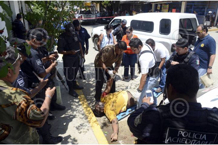 ACAPULCO, GUERRERO, 27JULIO2013.- Con armas de fuego calibres 9 milímetros, fueron ejecutados los taxistas Obed Zúñiga López, Margarita Trejo López, estos dos matrimonio y Santiago Calleja Chávez, ambos de 31, 29 y 25 años de edad, respectivamente. Los cadáveres quedaron tirados en diferentes direcciones de la colonia Izazaga. Los hechos aparentemente ocurrieron cuando los taxistas llegaron a la cancha de la colonia mencionada, llegaron a tratar de preparar el almuerzo, ya que había chicharrón, tortilla y refrescos de cocacola, tirados y los cuerpos tirados con varios impactos de balas en el cuerpo. Presuntamente los tres trabajadores del volante, fueron acatados por un comando armado que llegó hasta donde se hallaban reunidos y ahí los abatieron a balazos. Los nombres de los hoy occisos fueron proporcionados por la señora Norma Nieves. FOTO: BERNANDINO HERNÁNDEZ /CUARTOSCURO.COM