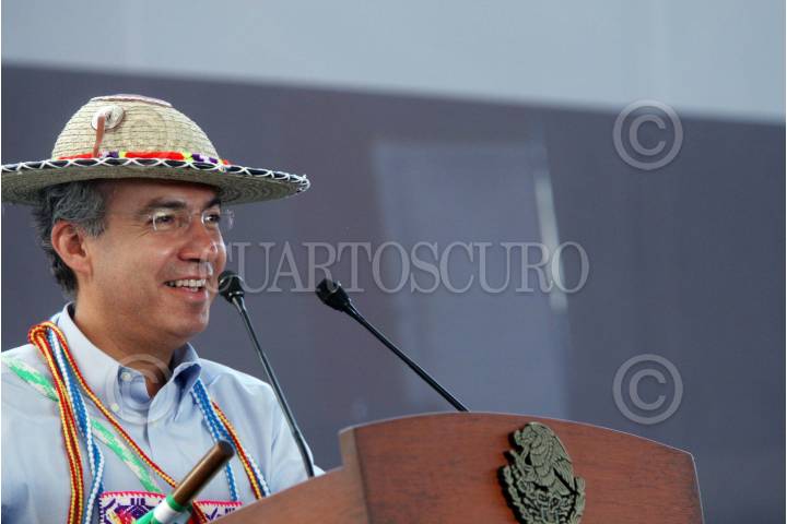 DURANGO, DURANGO.- 21FEBRERO2008.- El presidente de México Felipe Calderón Hinojosa, durante el día internacional de la lengua materna que se llevó a cabo en el aserradero "Patio de milpillas" FOTO: ALFREDO GUERRERO/CUARTOSCURO.COM